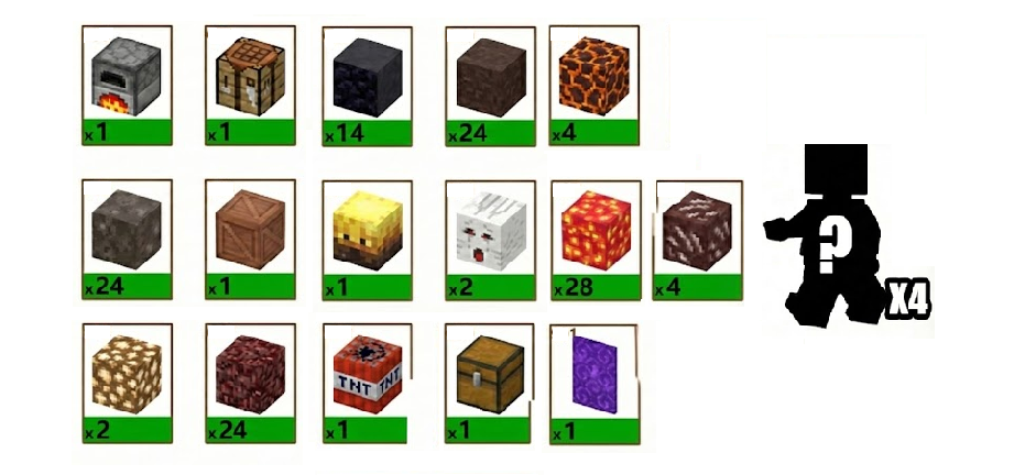 🟩 bloki takie jak: lawa, glowstone, kwarc, dynamit oraz aż 24 cegły z netheru
